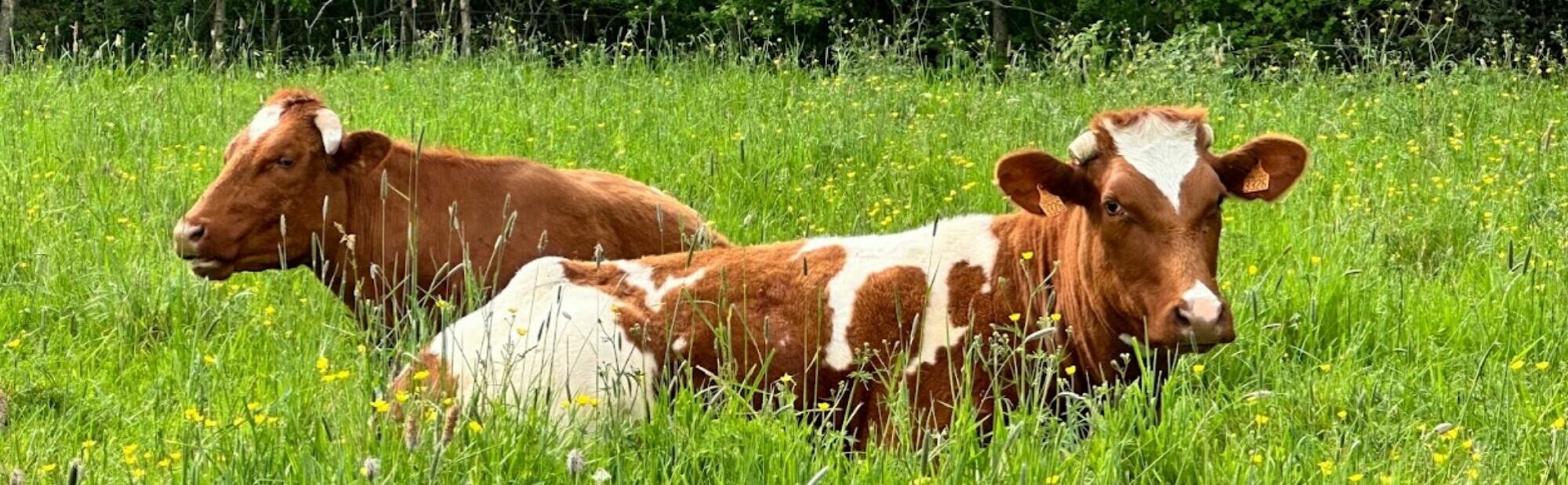 Notre élevage de rouges des prés est situé dans les prés verdoyants de notre ferme familiale.